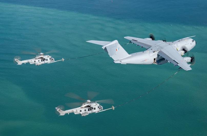 “Imagine an aircraft with a maximum weight of 140 tonnes flying close to its stall speed of 110 knots to match a helicopter’s speed,” said Lieutenant Colonel Nicolas, A400M officer for the French Air and Space Force. Airbus updated the A400M’s electronic flight controls and adapted refuelling pods to make this feat possible.