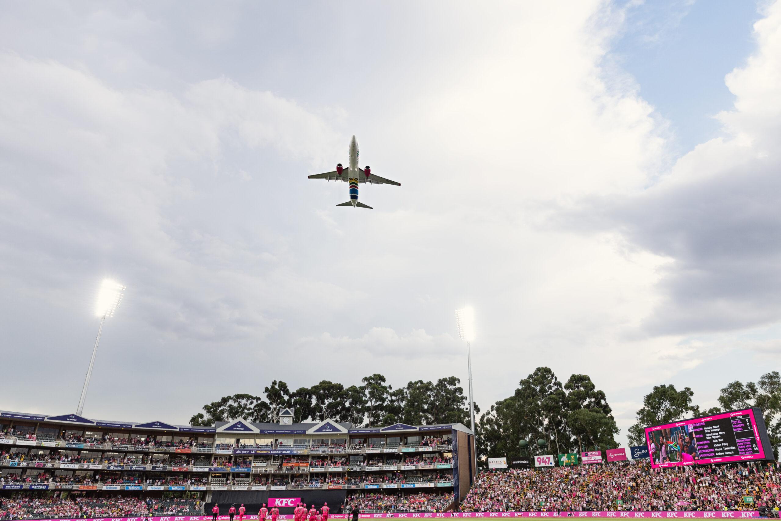 FlySafair conducted a stadium flyover above DP World Wanderers Stadium in Johannesburg on 30 January 2026 in support of the Pink Day T20 International between the Proteas and the West Indies, an event associated with breast cancer awareness in South Africa.