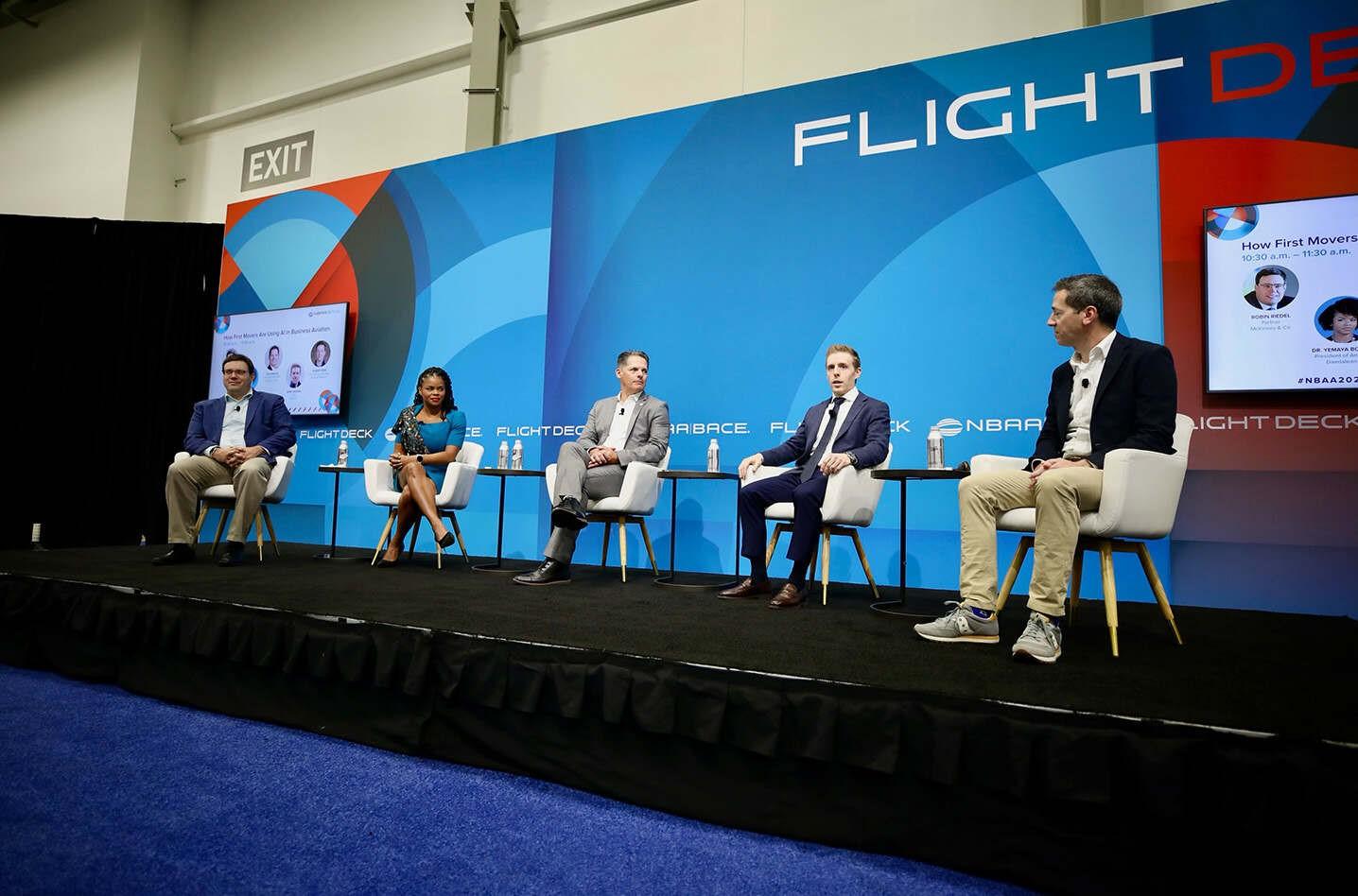 Taking place at the Flight Deck, moderator Robin Riedel, partner at McKinsey & Company, led experts in the discussion, who agreed AI has a place on business aviation in general, but differed in their expectations for its application in the cockpit.