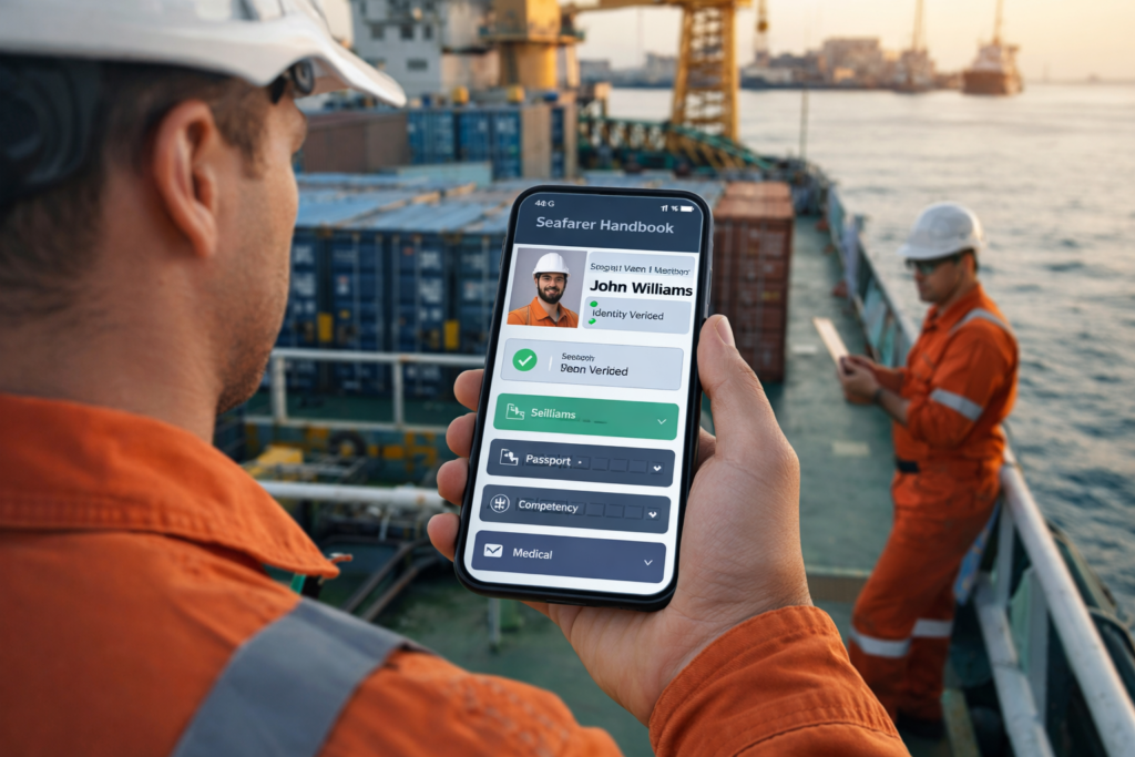 The pilot introduces a digital Seafarer Handbook, allowing crew credentials and professional certificates to be stored and verified electronically. According to the companies, this replaces manual document checks and reduces processing time for routine administrative tasks.